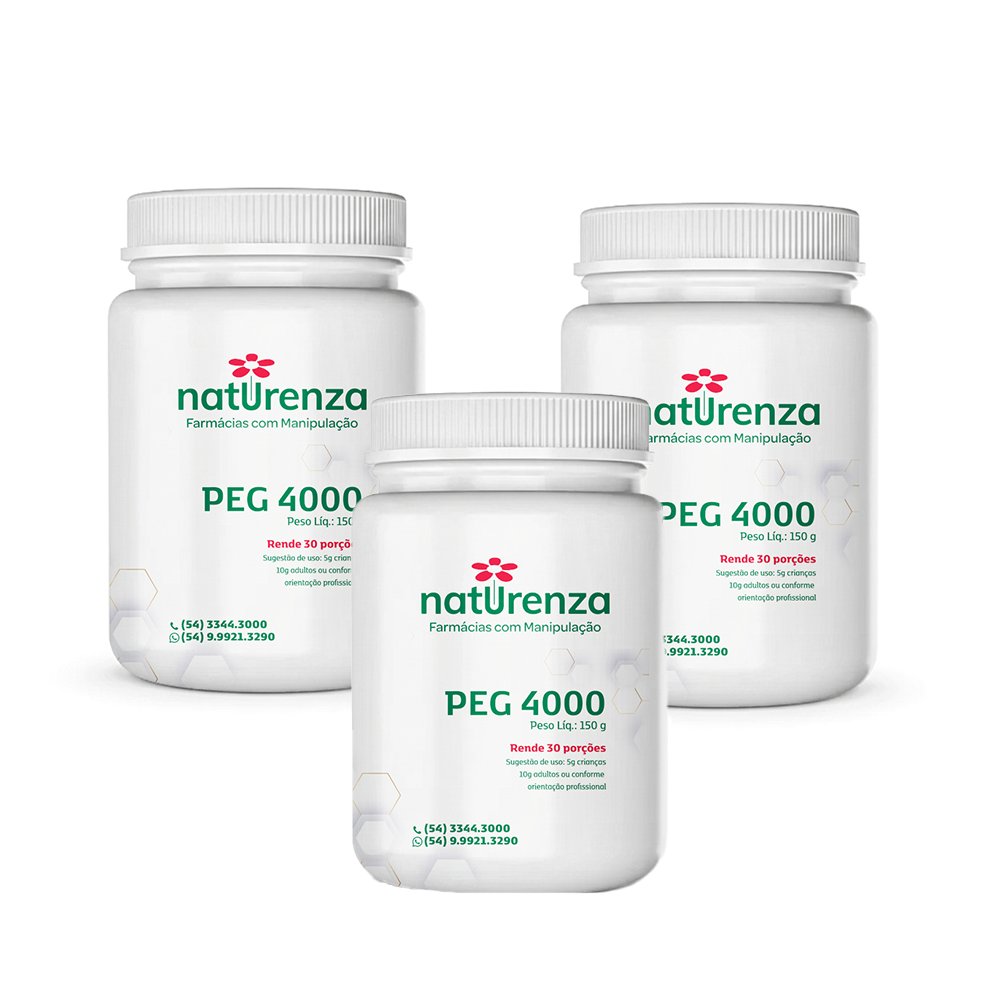 Polietilenoglicol 4000 puro (PEG 4000) - Pote com 150g. Não contém glúten, lactose, açúcar ou corantes.